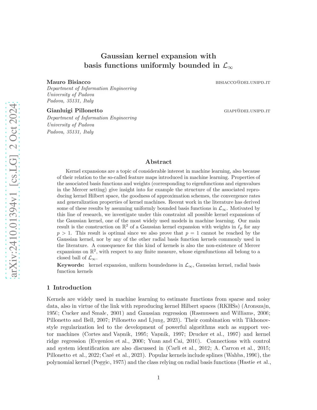 Gaussian kernel expansion with basis functions uniformly bounded in