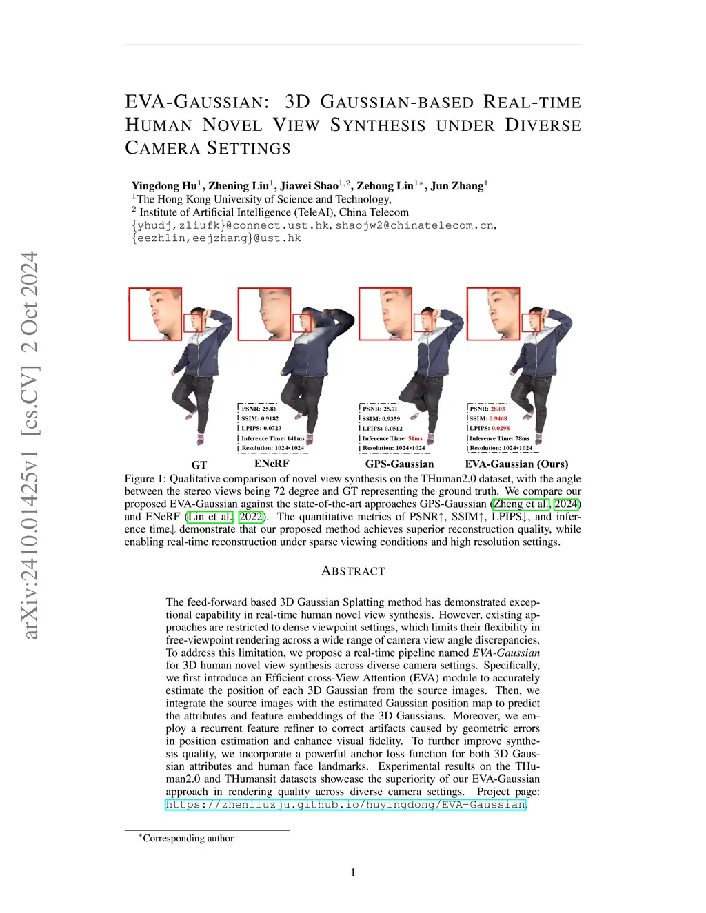 EVA-Gaussian: 3D Gaussian-based Real-time Human Novel View Synthesis under Diverse Multi-view Camera Settings