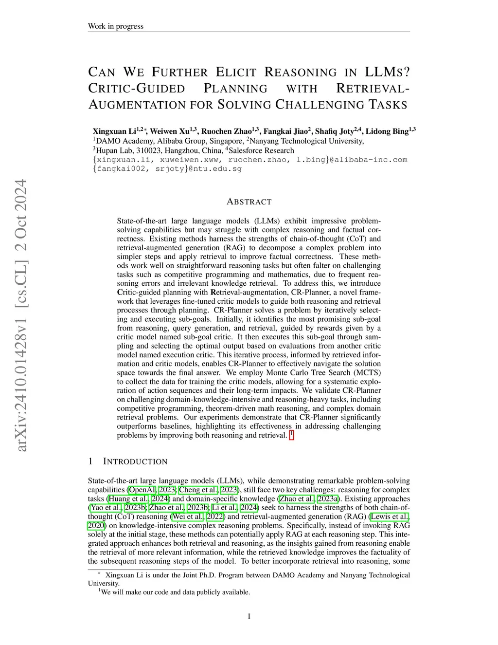 Can We Further Elicit Reasoning in LLMs? Critic-Guided Planning with