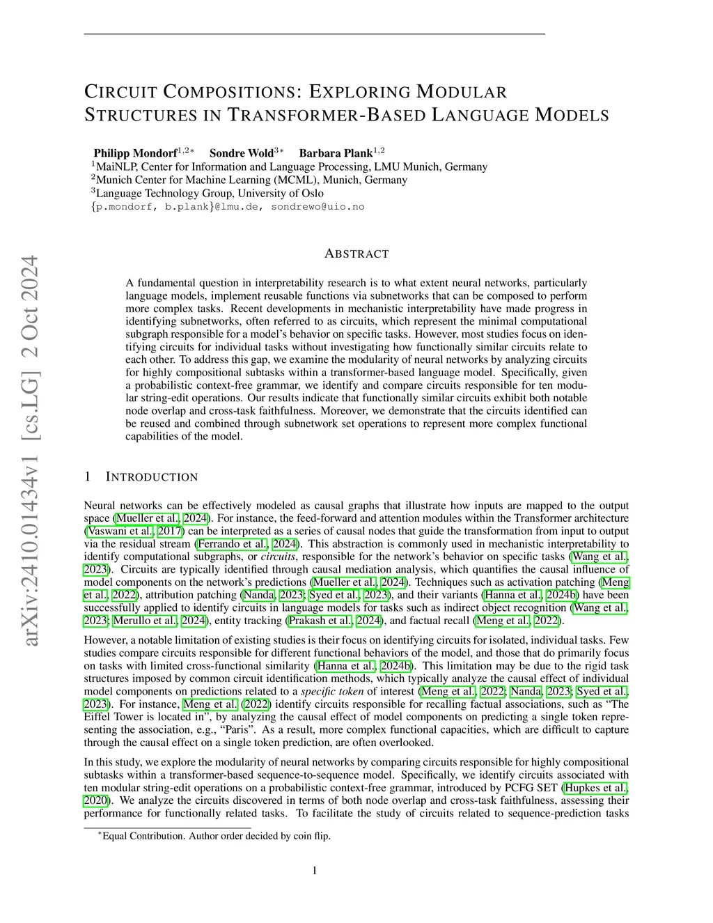 Circuit Compositions: Exploring Modular Structures in Transformer-Based Language Models