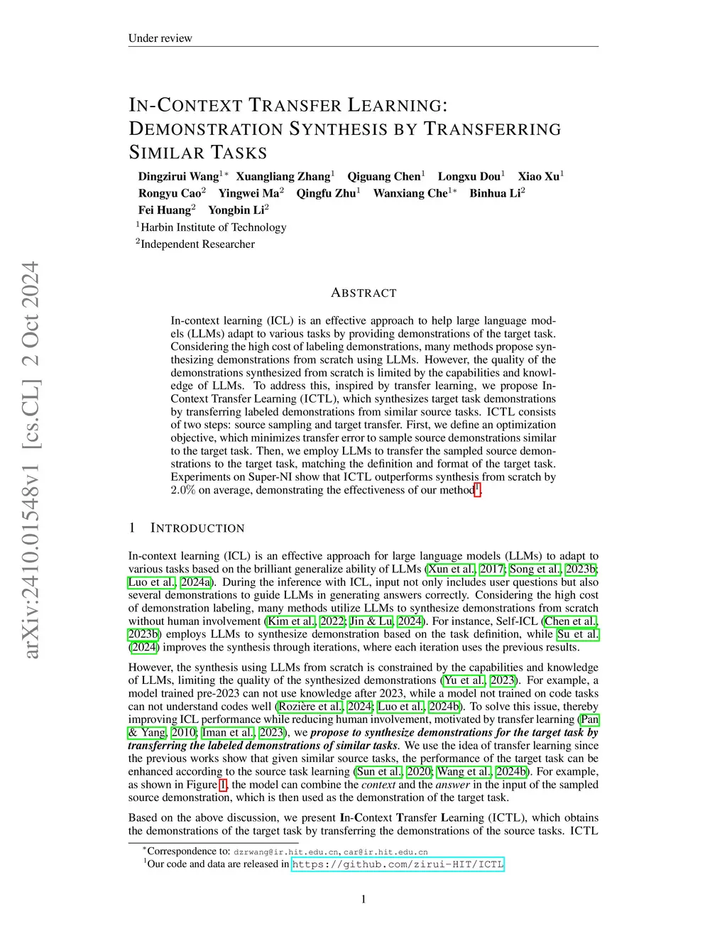 In-Context Transfer Learning: Demonstration Synthesis by Transferring