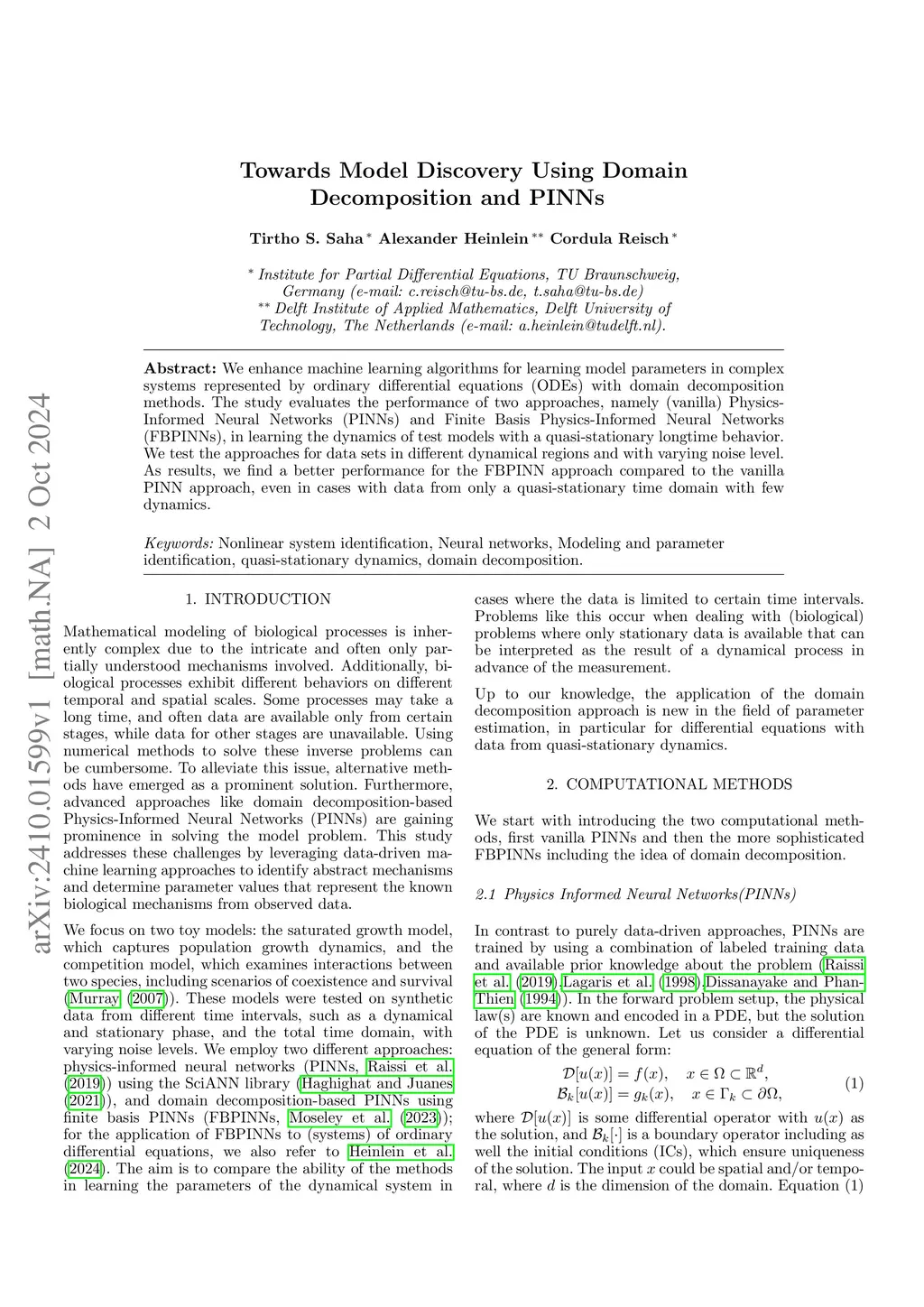 Towards Model Discovery Using Domain Decomposition and PINNs