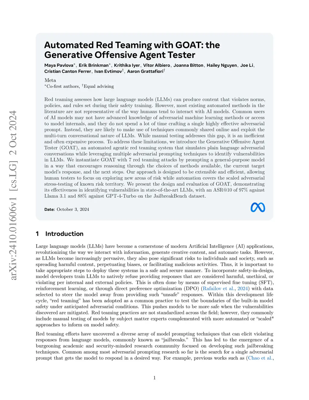 Automated Red Teaming with GOAT: the Generative Offensive Agent Tester