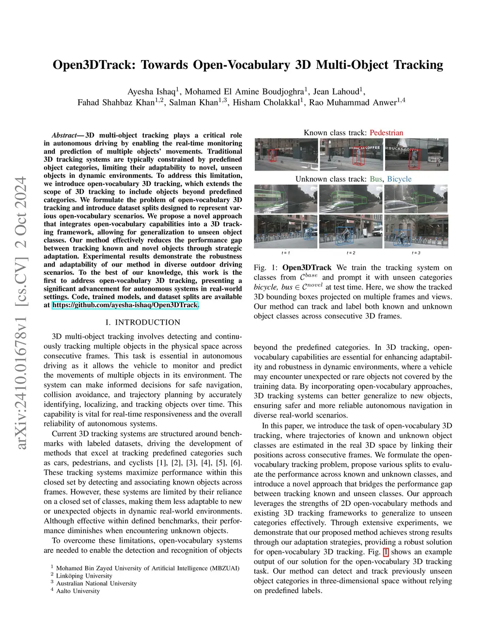 Open3DTrack: Towards Open-Vocabulary 3D Multi-Object Tracking