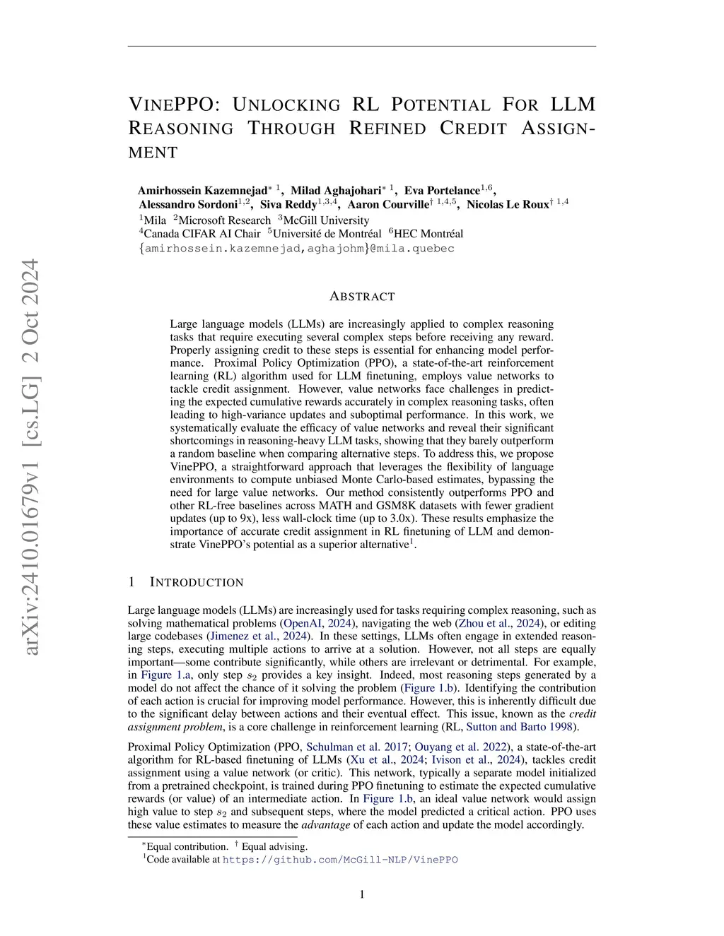 VinePPO: Refining Credit Assignment in RL Training of LLMs