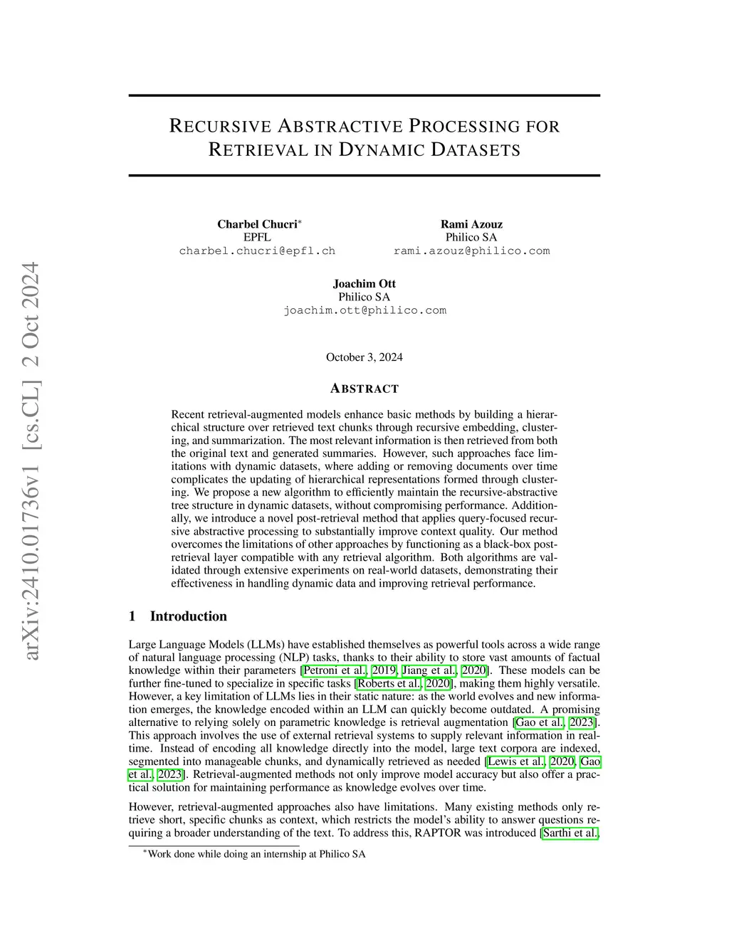 Recursive Abstractive Processing for Retrieval in Dynamic Datasets