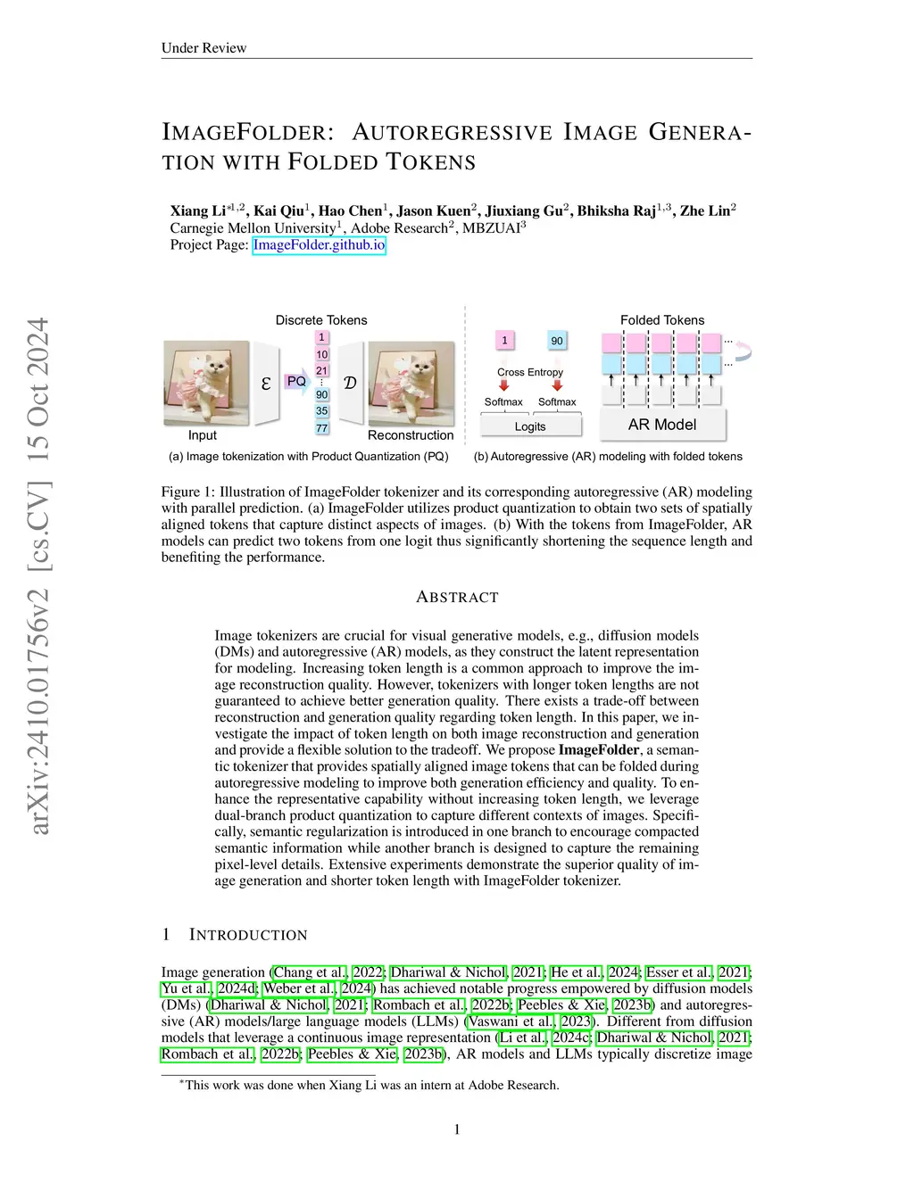 Image tokenizers are crucial for visual generative models, e.g., diffusion models (DMs) and autoregressive (AR) models, as they construct the latent representation for modeling. Increasing token length is a common approach to improve the image reconstruction quality. However, tokenizers with longer token lengths are not guaranteed to achieve better generation quality. There exists a trade-off between reconstruction and generation quality regarding token length. In this paper, we investigate the impact of token length on both image reconstruction and generation and provide a flexible solution to the tradeoff. We propose ImageFolder, a semantic tokenizer that provides spatially aligned image tokens that can be folded during autoregressive modeling to improve both generation efficiency and quality. To enhance the representative capability without increasing token length, we leverage dual-branch product quantization to capture different contexts of images. Specifically, semantic regularization is introduced in one branch to encourage compacted semantic information while another branch is designed to capture the remaining pixel-level details. Extensive experiments demonstrate the superior quality of image generation and shorter token length with ImageFolder tokenizer.