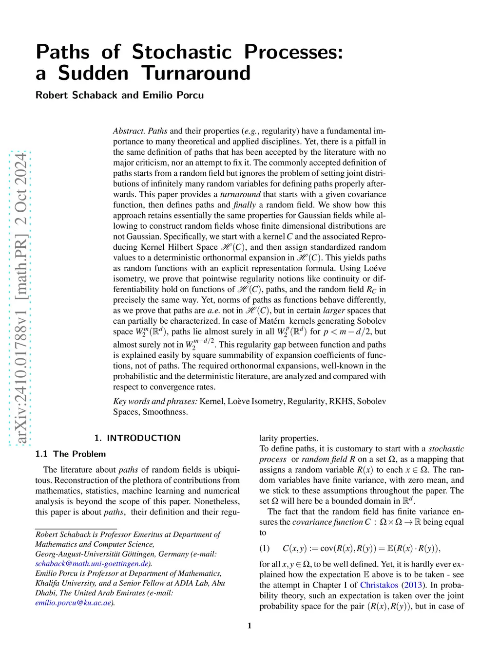 The commonly accepted definition of paths starts from a random field but ignores the problem of setting joint distributions of infinitely many random variables for defining paths properly afterwards. This paper provides a turnaround that starts with a given covariance function, then defines paths and finally a random field. We show how this approach retains essentially the same properties for Gaussian fields while allowing to construct random fields whose finite dimensional distributions are not Gaussian. Specifically, we start with a kernel and the associated Reproducing Kernel Hilbert Space , and then assign standardized random values to a deterministic orthonormal expansion in . This yields paths as random functions with an explicit representation formula. Using Lo\éve isometry, we prove that pointwise regularity notions like continuity or differentiability hold on functions of , paths, and the random field in precisely the same way. Yet, norms of paths as functions behave differently, as we prove that paths are a.s. not in , but in certain larger spaces that can partially be characterized. In case of Matern kernels generating Sobolev space , paths lie almost surely in all for , but almost surely not in . This regularity gap between function and paths is explained easily by square summability of expansion coefficients of functions, not of paths. The required orthonormal expansions, well-known in the probabilistic and the deterministic literature, are analyzed and compared with respect to convergence rates.