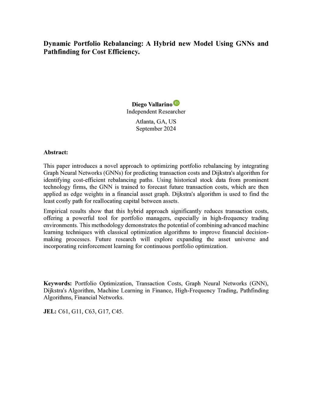 This paper introduces a novel approach to optimizing portfolio rebalancing by integrating Graph Neural Networks (GNNs) for predicting transaction costs and Dijkstra's algorithm for identifying cost-efficient rebalancing paths. Using historical stock data from prominent technology firms, the GNN is trained to forecast future transaction costs, which are then applied as edge weights in a financial asset graph. Dijkstra's algorithm is used to find the least costly path for reallocating capital between assets. Empirical results show that this hybrid approach significantly reduces transaction costs, offering a powerful tool for portfolio managers, especially in high-frequency trading environments. This methodology demonstrates the potential of combining advanced machine learning techniques with classical optimization algorithms to improve financial decision-making processes. Future research will explore expanding the asset universe and incorporating reinforcement learning for continuous portfolio optimization.