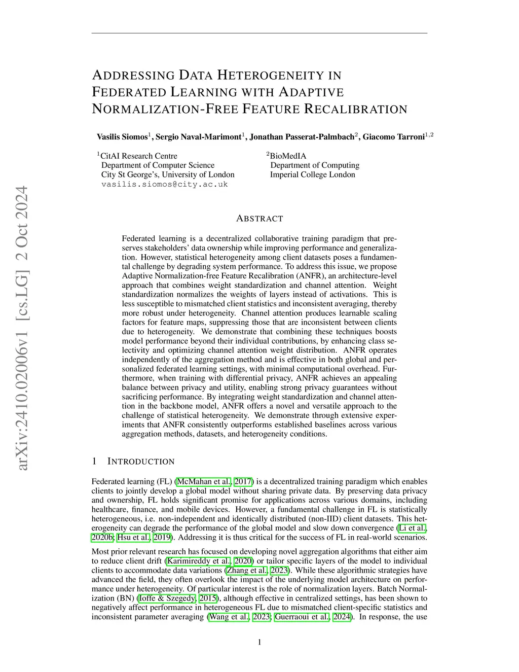 An Architecture Built for Federated Learning: Addressing Data Heterogeneity through Adaptive Normalization-Free Feature Recalibration