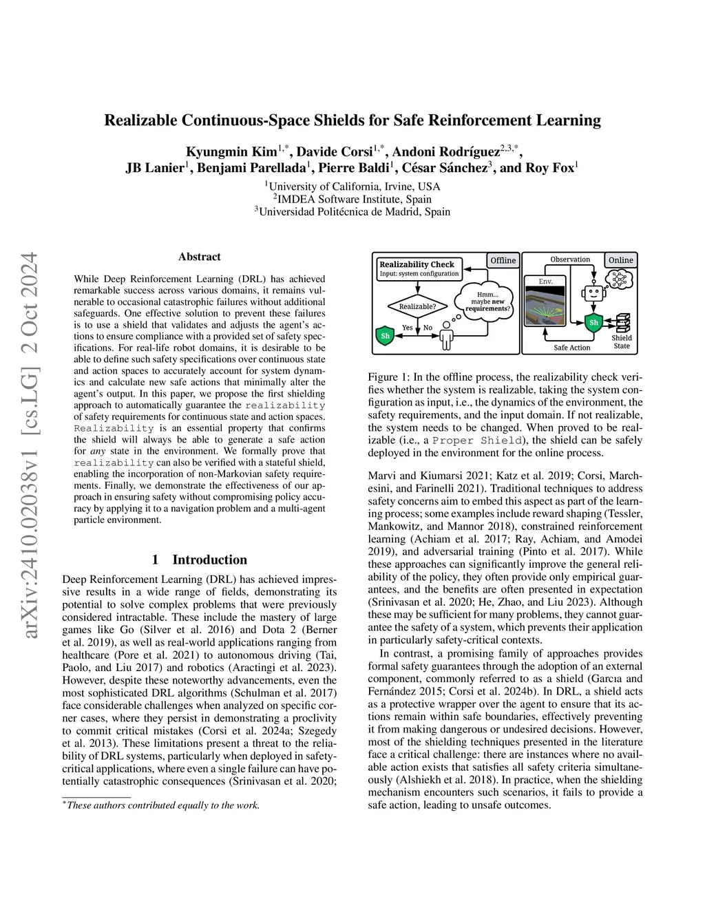 Realizable Continuous-Space Shields for Safe Reinforcement Learning