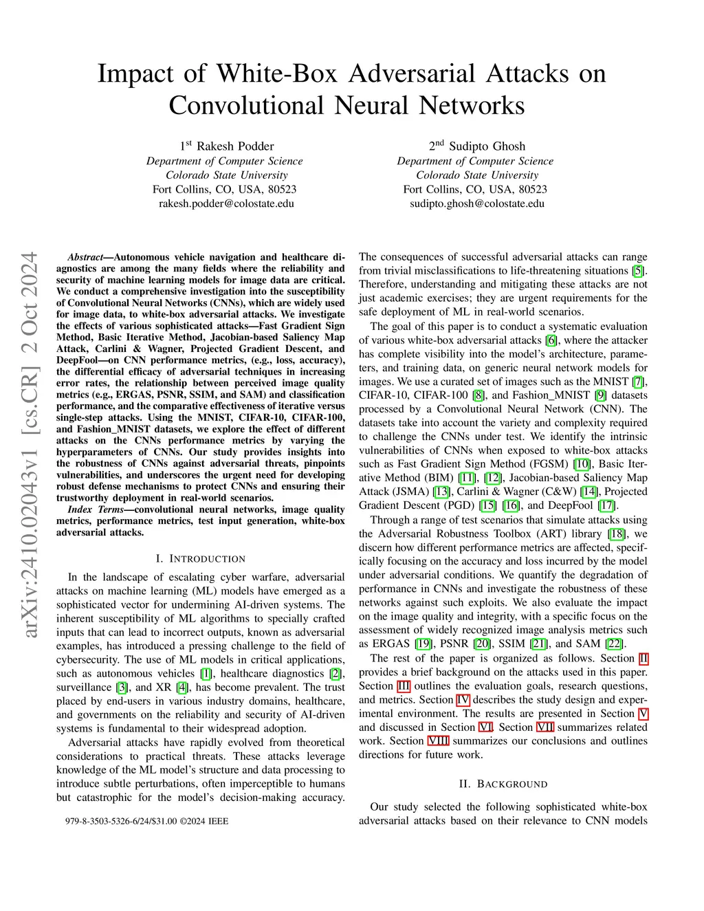 Impact of White-Box Adversarial Attacks on Convolutional Neural Networks