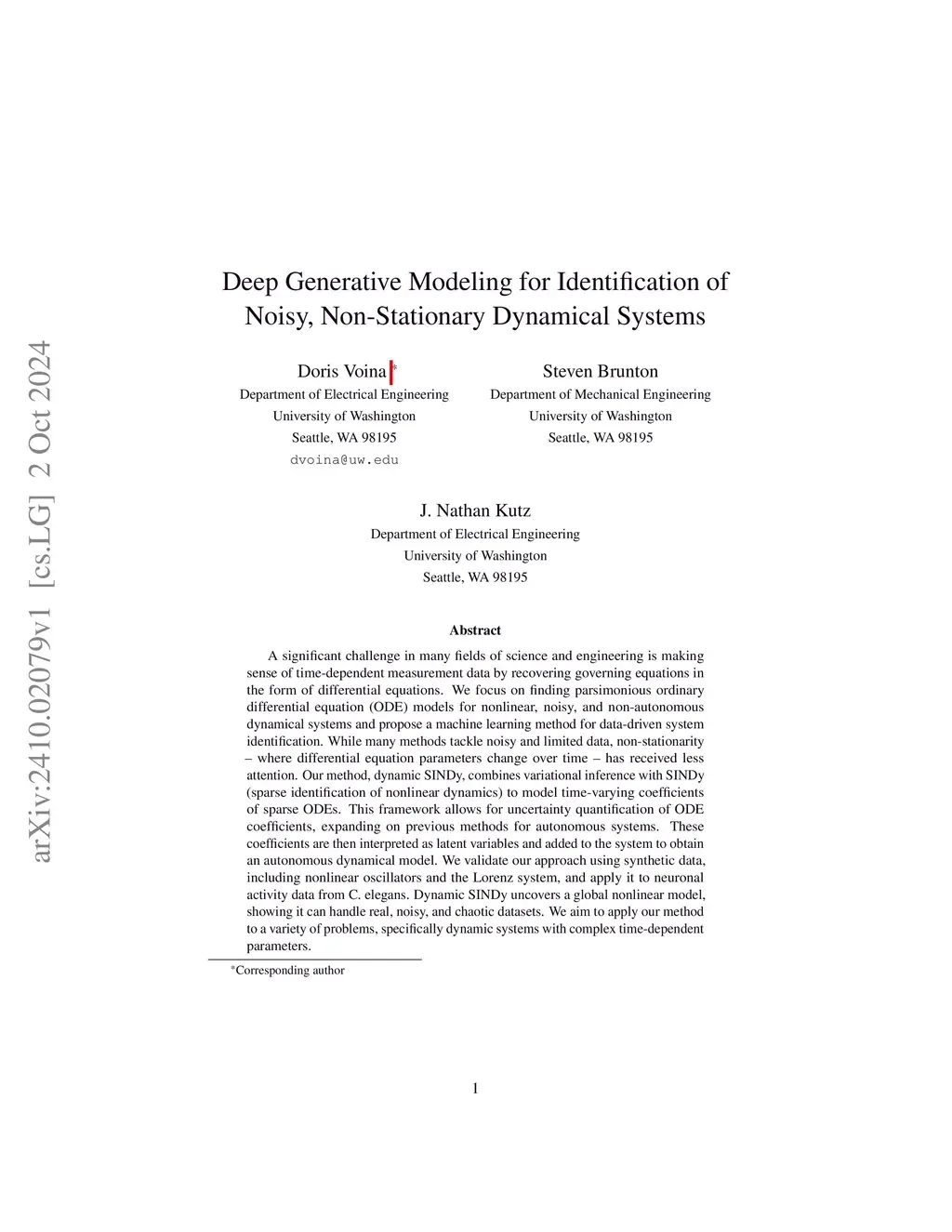 Deep Generative Modeling for Identification of Noisy, Non-Stationary