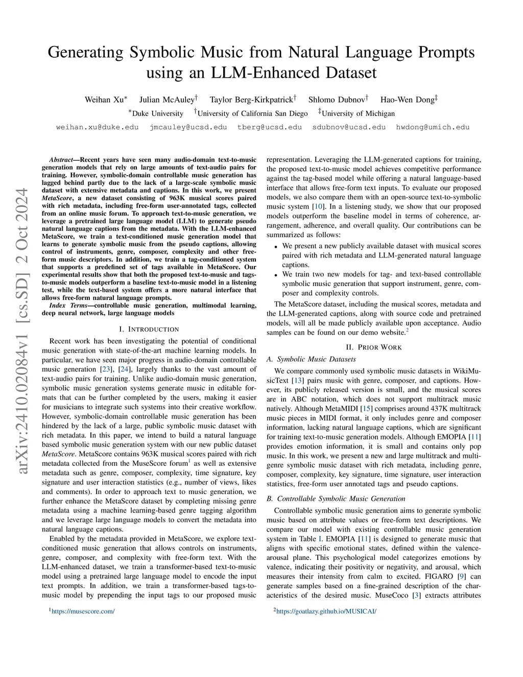 Generating Symbolic Music from Natural Language Prompts using an LLM-Enhanced Dataset