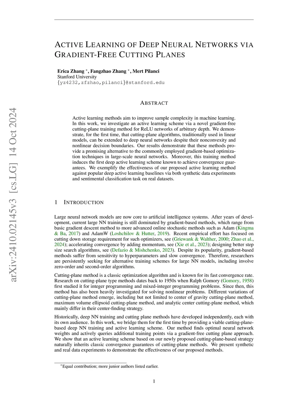 Active Learning of Deep Neural Networks via Gradient-Free Cutting Planes