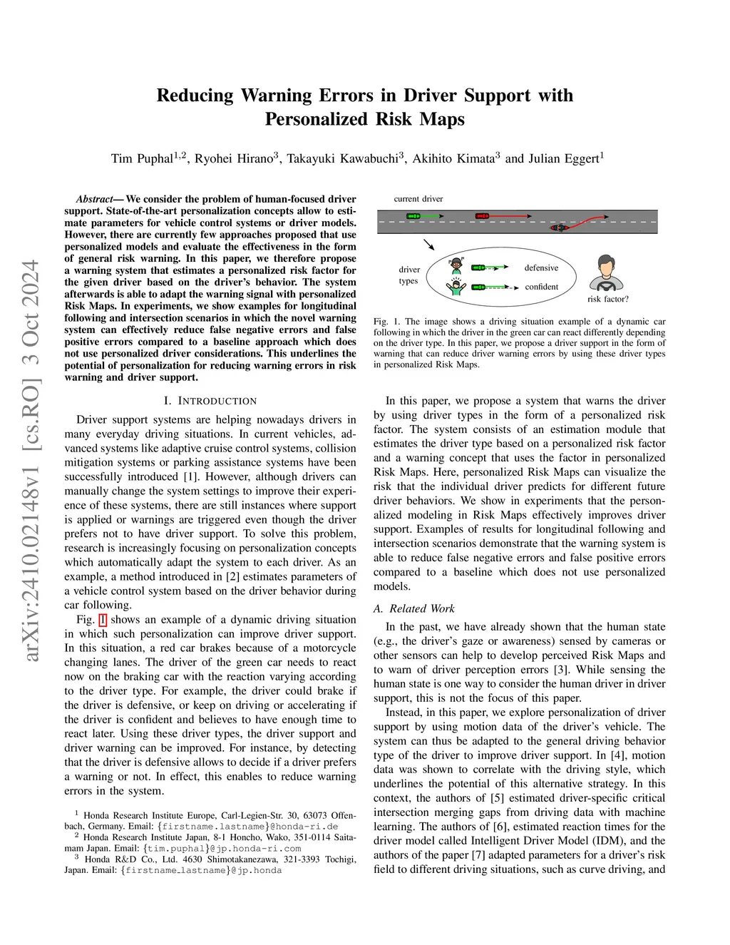 Reducing Warning Errors in Driver Support with Personalized Risk Maps