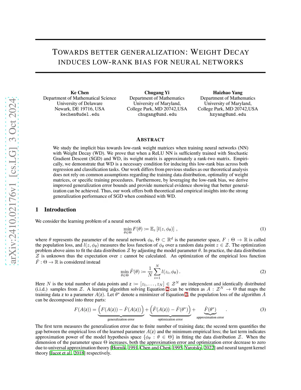 Towards Better Generalization: Weight Decay Induces Low-rank Bias for