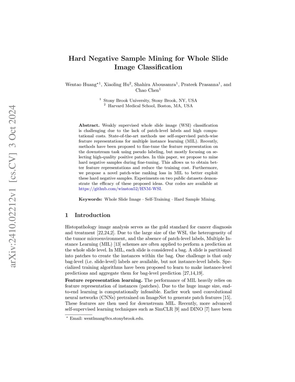 Hard Negative Sample Mining for Whole Slide Image Classification