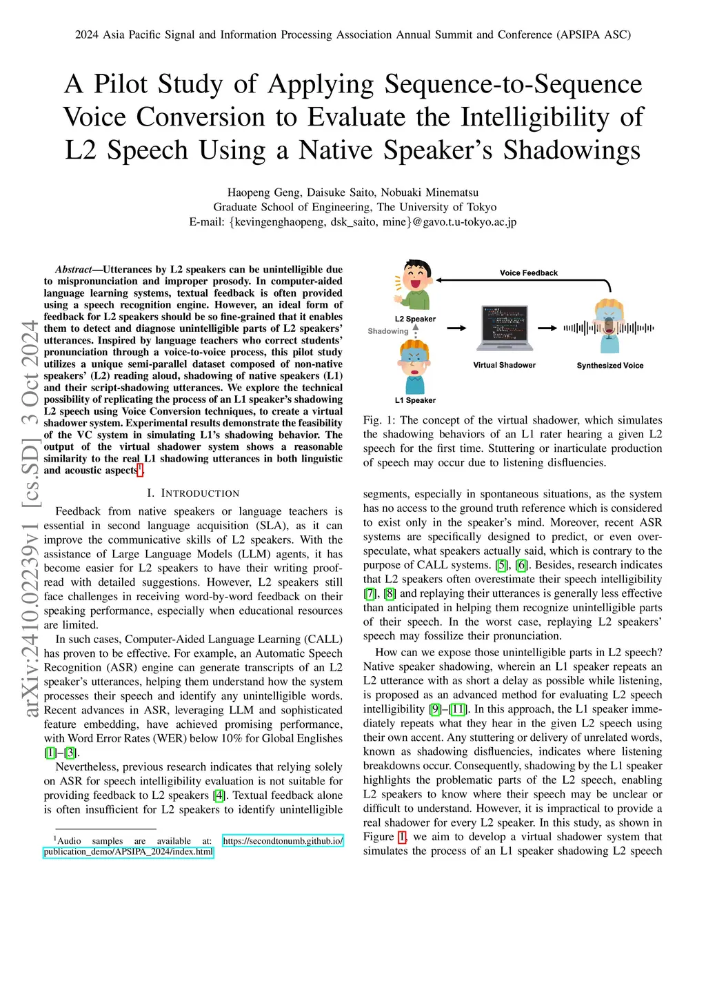 Utterances by L2 speakers can be unintelligible due to mispronunciation and improper prosody. In computer-aided language learning systems, textual feedback is often provided using a speech recognition engine. However, an ideal form of feedback for L2 speakers should be so fine-grained that it enables them to detect and diagnose unintelligible parts of L2 speakers' utterances. Inspired by language teachers who correct students' pronunciation through a voice-to-voice process, this pilot study utilizes a unique semi-parallel dataset composed of non-native speakers' (L2) reading aloud, shadowing of native speakers (L1) and their script-shadowing utterances. We explore the technical possibility of replicating the process of an L1 speaker's shadowing L2 speech using Voice Conversion techniques, to create a virtual shadower system. Experimental results demonstrate the feasibility of the VC system in simulating L1's shadowing behavior. The output of the virtual shadower system shows a reasonable similarity to the real L1 shadowing utterances in both linguistic and acoustic aspects.