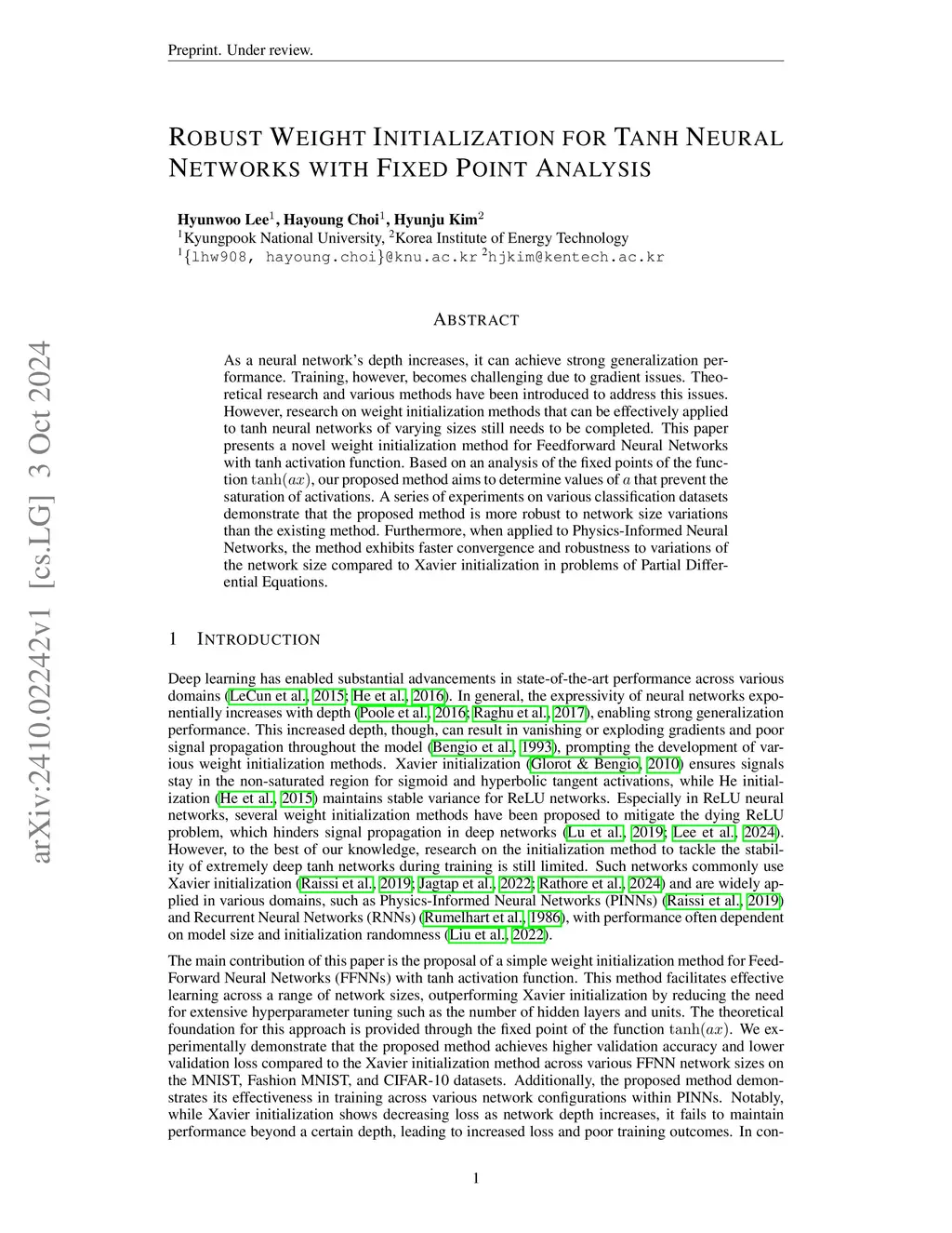 Robust Weight Initialization for Tanh Neural Networks with Fixed Point Analysis