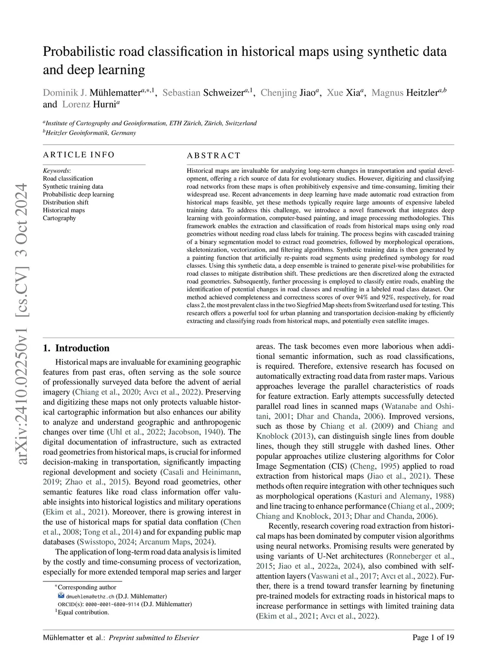 Historical maps are invaluable for analyzing long-term changes in transportation and spatial development, offering a rich source of data for evolutionary studies. However, digitizing and classifying road networks from these maps is often expensive and time-consuming, limiting their widespread use. Recent advancements in deep learning have made automatic road extraction from historical maps feasible, yet these methods typically require large amounts of labeled training data. To address this challenge, we introduce a novel framework that integrates deep learning with geoinformation, computer-based painting, and image processing methodologies. This framework enables the extraction and classification of roads from historical maps using only road geometries without needing road class labels for training. The process begins with training of a binary segmentation model to extract road geometries, followed by morphological operations, skeletonization, vectorization, and filtering algorithms. Synthetic training data is then generated by a painting function that artificially re-paints road segments using predefined symbology for road classes. Using this synthetic data, a deep ensemble is trained to generate pixel-wise probabilities for road classes to mitigate distribution shift. These predictions are then discretized along the extracted road geometries. Subsequently, further processing is employed to classify entire roads, enabling the identification of potential changes in road classes and resulting in a labeled road class dataset. Our method achieved completeness and correctness scores of over 94% and 92%, respectively, for road class 2, the most prevalent class in the two Siegfried Map sheets from Switzerland used for testing. This research offers a powerful tool for urban planning and transportation decision-making by efficiently extracting and classifying roads from historical maps.