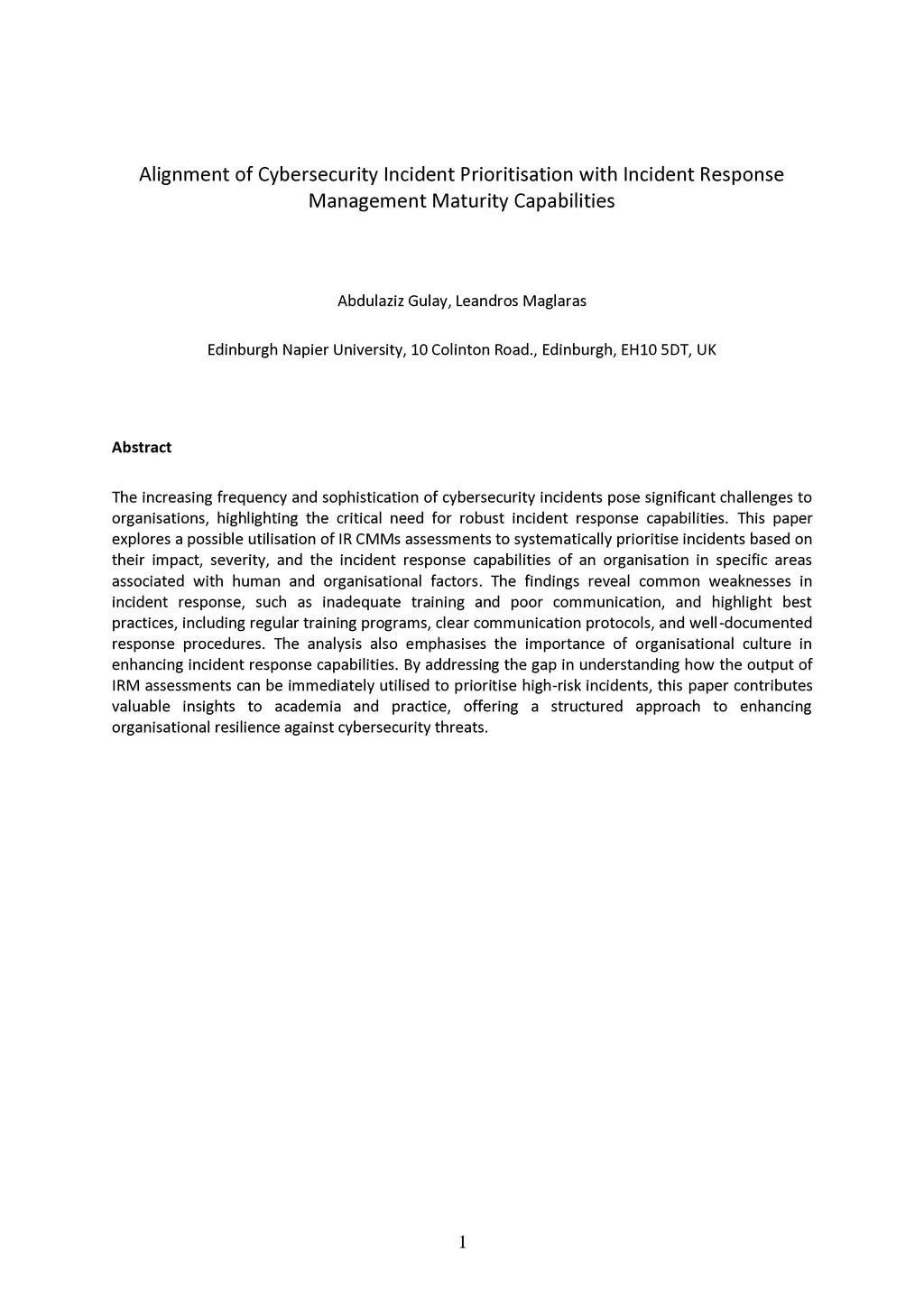 Alignment of Cybersecurity Incident Prioritisation with Incident
