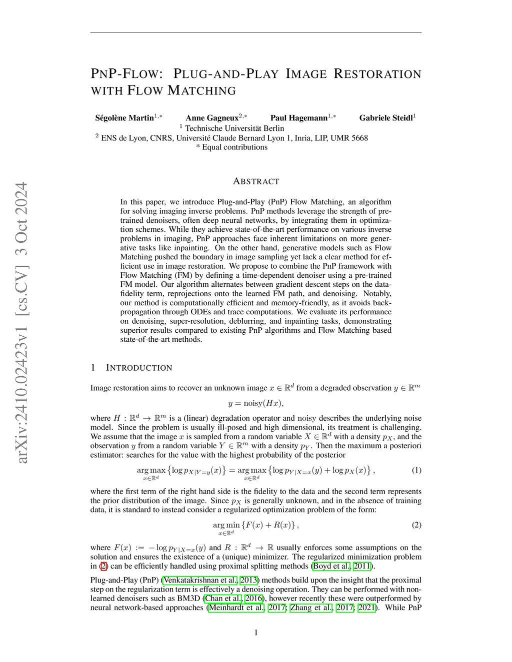 PnP-Flow: Plug-and-Play Image Restoration with Flow Matching