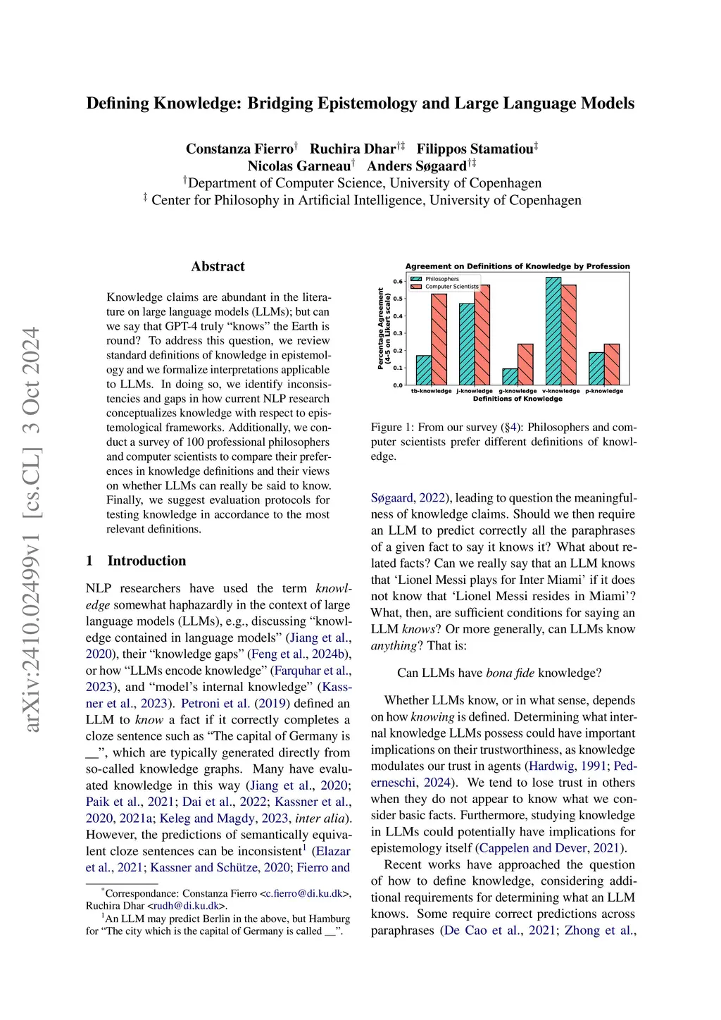 Defining Knowledge: Bridging Epistemology and Large Language Models