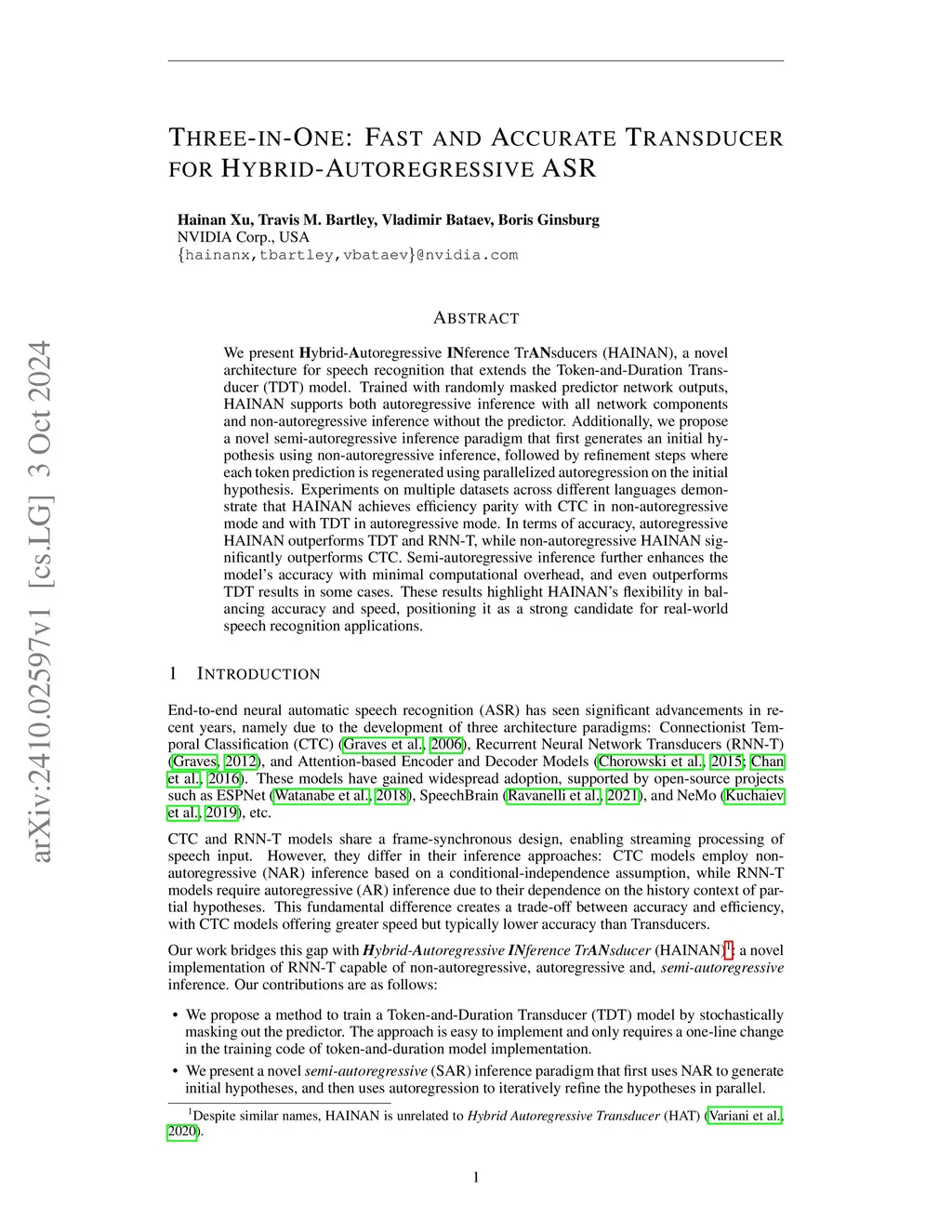 HAINAN: Fast and Accurate Transducer for Hybrid-Autoregressive ASR