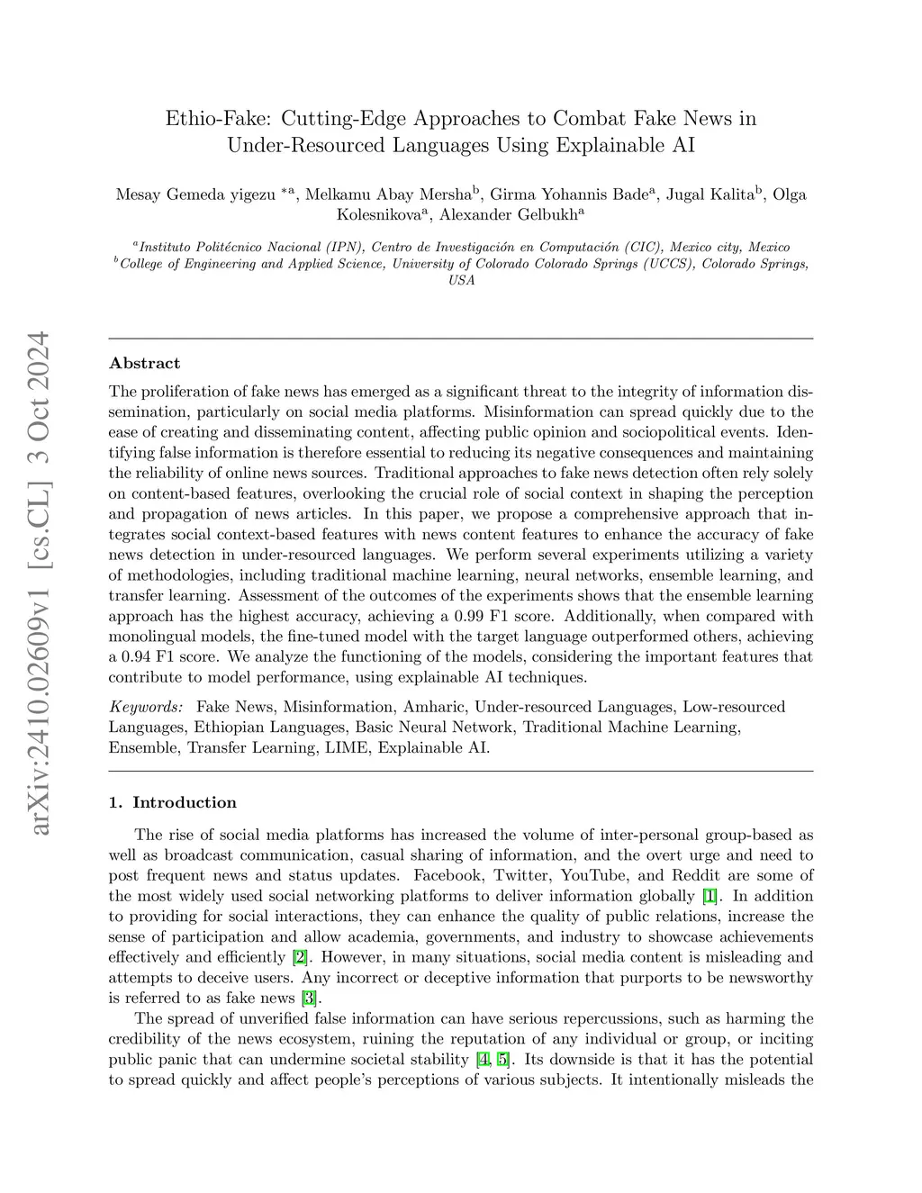 Ethio-Fake: Cutting-Edge Approaches to Combat Fake News in