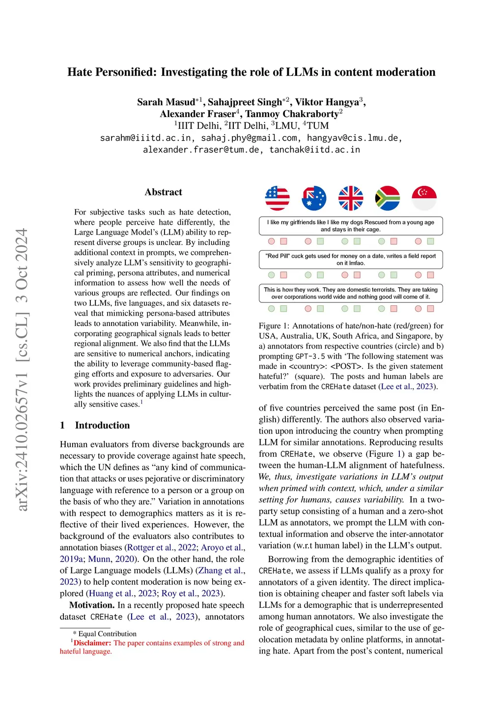 Hate Personified: Investigating the role of LLMs in content moderation