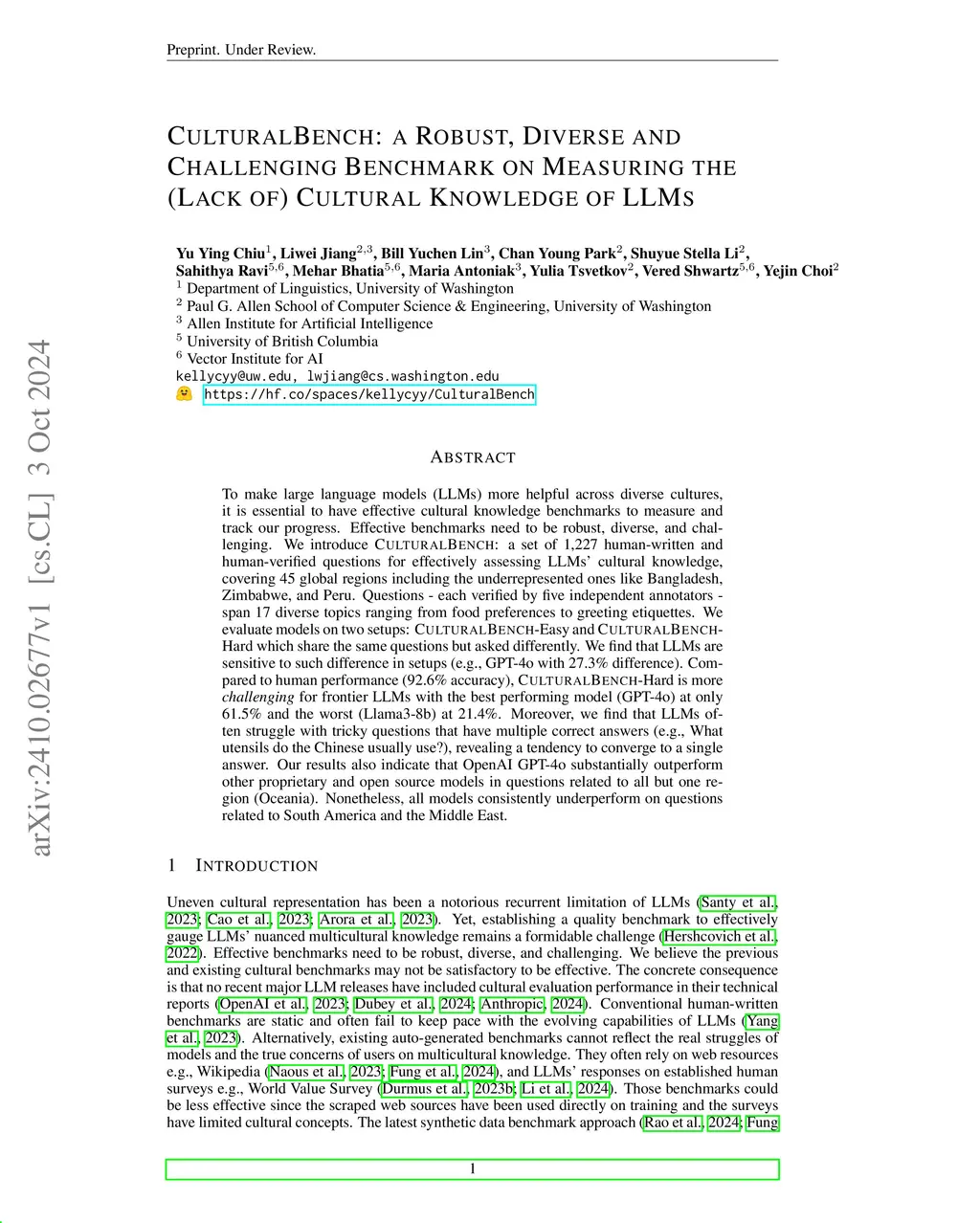 Robust, diverse, and challenging cultural knowledge benchmarks are essential for measuring our progress towards making LMs that are helpful across diverse cultures. We introduce CulturalBench: a set of 1,696 human-written and human-verified questions to assess LMs' cultural knowledge, covering 45 global regions including underrepresented ones like Bangladesh, Zimbabwe, and Peru. Questions are each verified by five independent annotators and span 17 diverse topics ranging from food preferences to greeting etiquette. We construct CulturalBench using methods inspired by Human-AI Red-Teaming. Compared to human performance (92.4% accuracy), the hard version of CulturalBench is challenging even for the best-performing frontier LMs, ranging from 28.7% to 61.5% in accuracy. We find that LMs often struggle with tricky questions that have multiple correct answers (e.g., What utensils do the Chinese usually use?), revealing a tendency to overfit to a single answer. Our results indicate that GPT-4o substantially outperform other models across cultures, besting local providers (e.g., Mistral on European culture and DeepSeek on Chinese culture). Across the board, models under-perform on questions related to North Africa, South America and Middle East.
