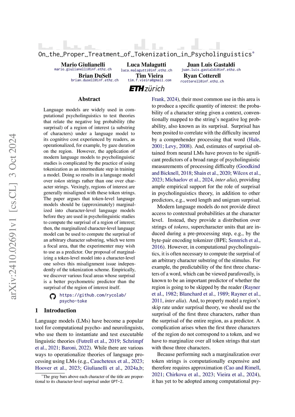 On the Proper Treatment of Tokenization in Psycholinguistics
