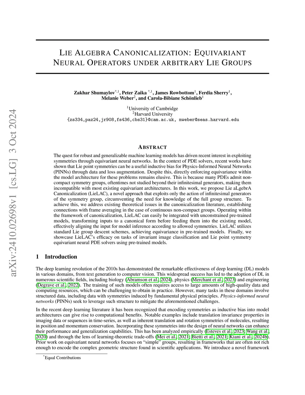The quest for robust and generalizable machine learning models has driven recent interest in exploiting symmetries through equivariant neural networks. In the context of PDE solvers, recent works have shown that Lie point symmetries can be a useful inductive bias for Physics-Informed Neural Networks (PINNs) through data and loss augmentation. Despite this, directly enforcing equivariance within the model architecture for these problems remains elusive. This is because many PDEs admit non-compact symmetry groups, oftentimes not studied beyond their infinitesimal generators, making them incompatible with most existing equivariant architectures. In this work, we propose Lie aLgebrA Canonicalization (LieLAC), a novel approach that exploits only the action of infinitesimal generators of the symmetry group, circumventing the need for knowledge of the full group structure. To achieve this, we address existing theoretical issues in the canonicalization literature, establishing connections with frame averaging in the case of continuous non-compact groups. Operating within the framework of canonicalization, LieLAC can easily be integrated with unconstrained pre-trained models, transforming inputs to a canonical form before feeding them into the existing model, effectively aligning the input for model inference according to allowed symmetries. LieLAC utilizes standard Lie group descent schemes, achieving equivariance in pre-trained models. Finally, we showcase LieLAC's efficacy on tasks of invariant image classification and Lie point symmetry equivariant neural PDE solvers using pre-trained models.