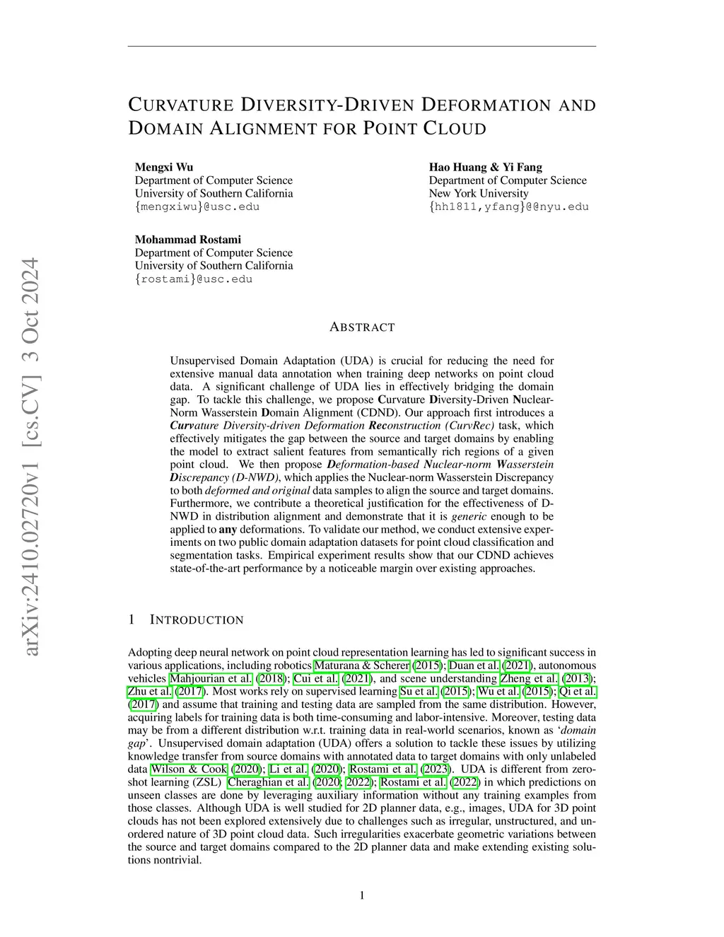 Curvature Diversity-Driven Deformation and Domain Alignment for Point