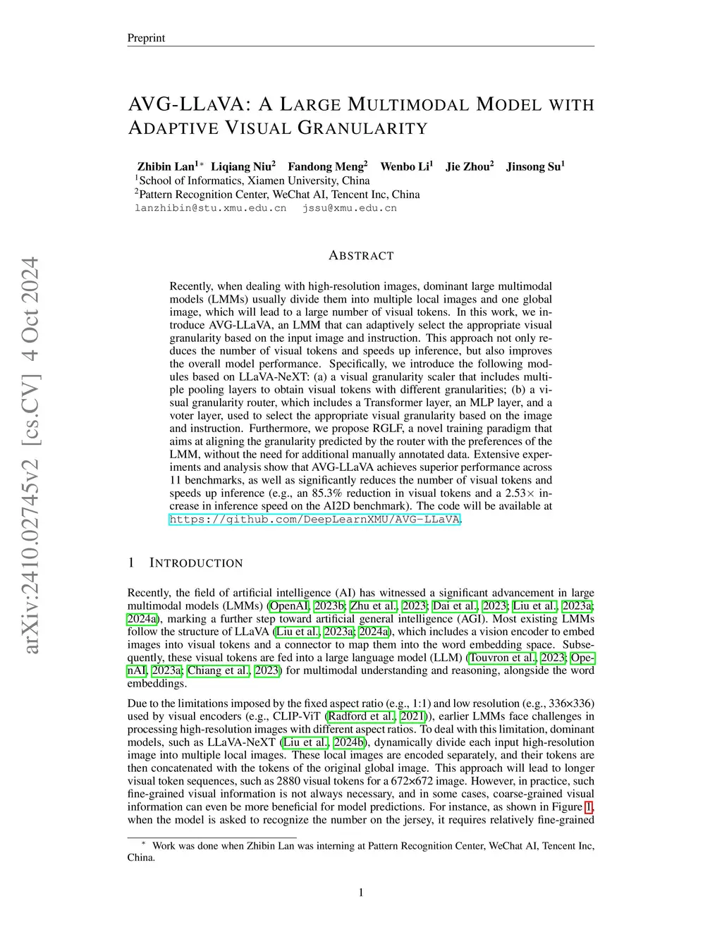 AVG-LLaVA: An Efficient Large Multimodal Model with Adaptive Visual Granularity