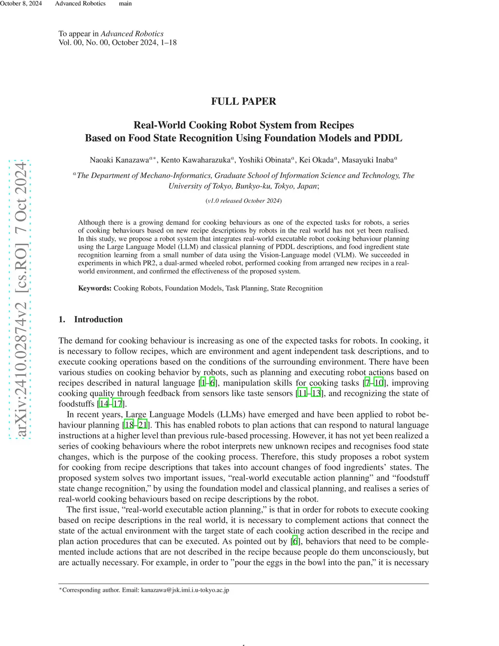 Real-World Cooking Robot System from Recipes Based on Food State