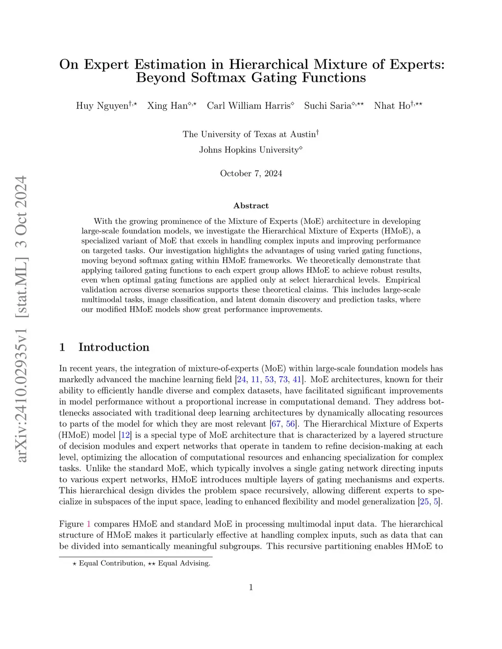 On Expert Estimation in Hierarchical Mixture of Experts: Beyond Softmax Gating Functions