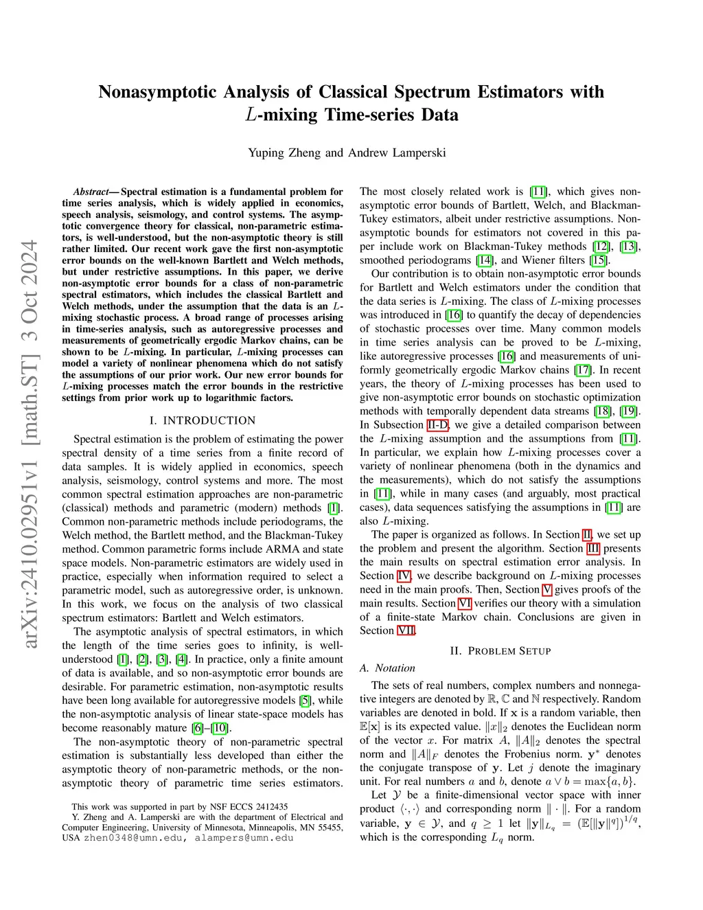 Spectral estimation is a fundamental problem for time series analysis, which is widely applied in economics, speech analysis, seismology, and control systems. The asymptotic convergence theory for classical, non-parametric estimators, is well-understood, but the non-asymptotic theory is still rather limited. Our recent work gave the first non-asymptotic error bounds on the well-known Bartlett and Welch methods, but under restrictive assumptions. In this paper, we derive non-asymptotic error bounds for a class of non-parametric spectral estimators, which includes the classical Bartlett and Welch methods, under the assumption that the data is an -mixing stochastic process. A broad range of processes arising in time-series analysis, such as autoregressive processes and measurements of geometrically ergodic Markov chains, can be shown to be -mixing. In particular, -mixing processes can model a variety of nonlinear phenomena which do not satisfy the assumptions of our prior work. Our new error bounds for -mixing processes match the error bounds in the restrictive settings from prior work up to logarithmic factors.