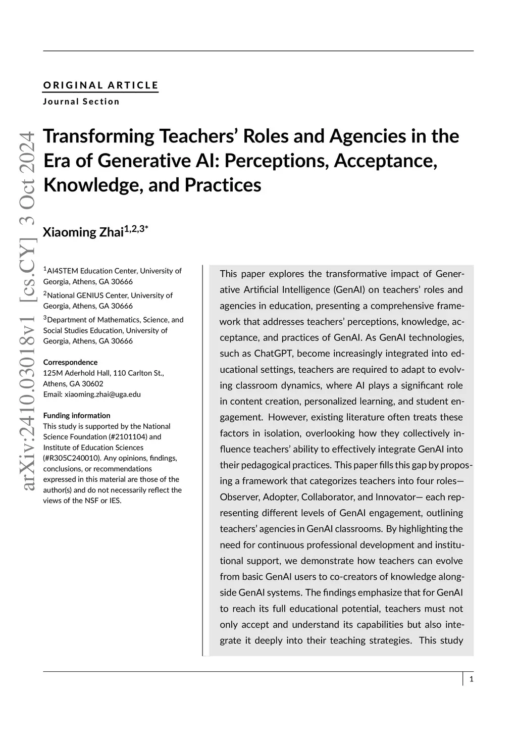 Transforming Teachers' Roles and Agencies in the Era of Generative AI: