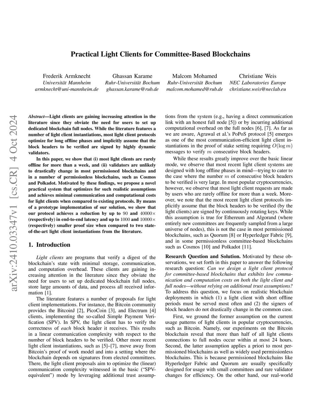Light clients are gaining increasing attention in the literature since they obviate the need for users to set up dedicated blockchain full nodes. While the literature features a number of light client instantiations, most light client protocols optimize for long offline phases and implicitly assume that the block headers to be verified are signed by highly dynamic validators. In this paper, we show that (i) most light clients are rarely offline for more than a week, and (ii) validators are unlikely to drastically change in most permissioned blockchains and in a number of permissionless blockchains, such as Cosmos and Polkadot. Motivated by these findings, we propose a novel practical system that optimizes for such realistic assumptions and achieves minimal communication and computational costs for light clients when compared to existing protocols. By means of a prototype implementation of our solution, we show that our protocol achieves a reduction by up to and (respectively) in end-to-end latency and up to and (respectively) smaller proof size when compared to two state-of-the-art light client instantiations from the literature.