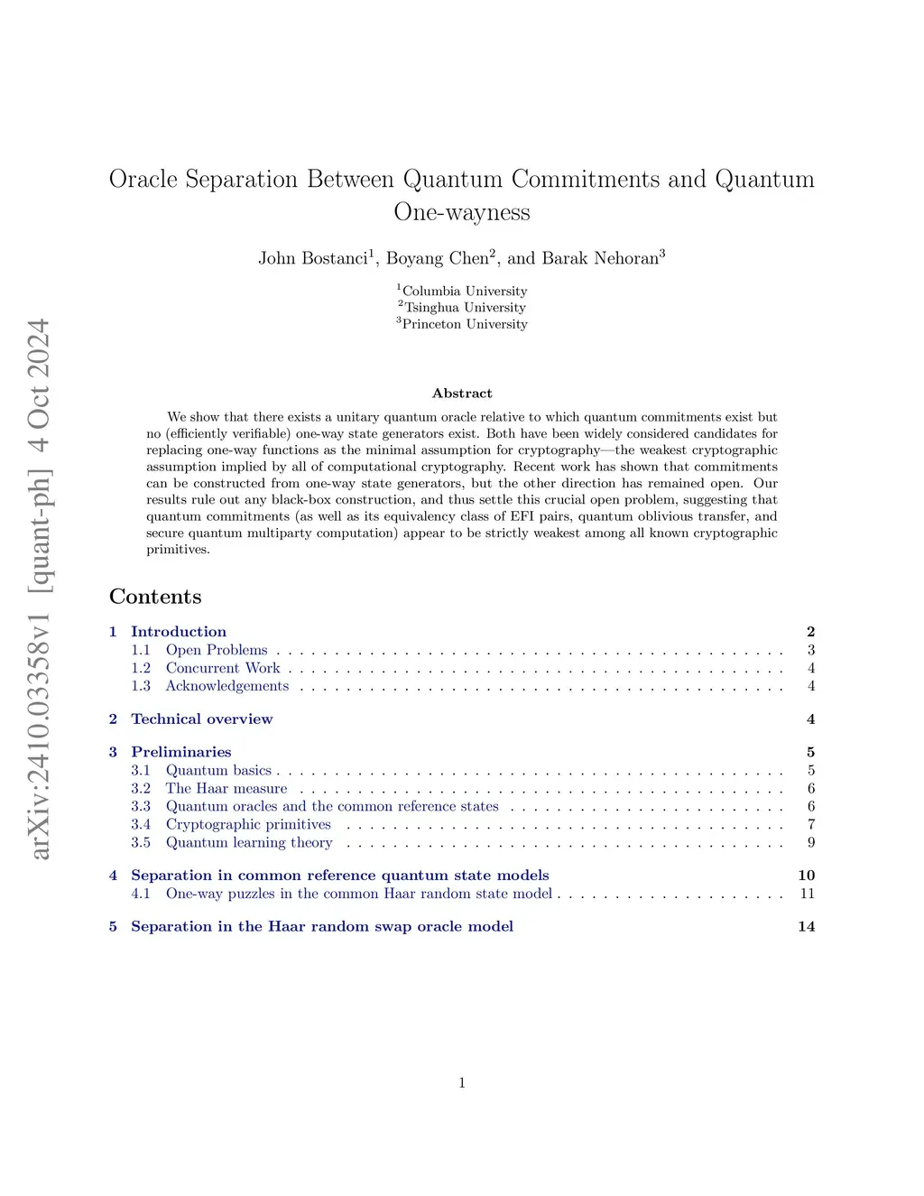 We show that there exists an oracle relative to which quantum commitments exist but no (efficiently verifiable) one-way state generators exist. Both have been widely considered candidates for replacing one-way functions as the minimal assumption for cryptography: the weakest cryptographic assumption implied by all of computational cryptography. Recent work has shown that commitments can be constructed from one-way state generators, but the other direction has remained open. Our results rule out any black-box construction, and thus settles this crucial open problem, suggesting that quantum commitments (as well as its equivalency class of EFI pairs, quantum oblivious transfer, and secure quantum multiparty computation) appear to be strictly weakest among all known cryptographic primitives.