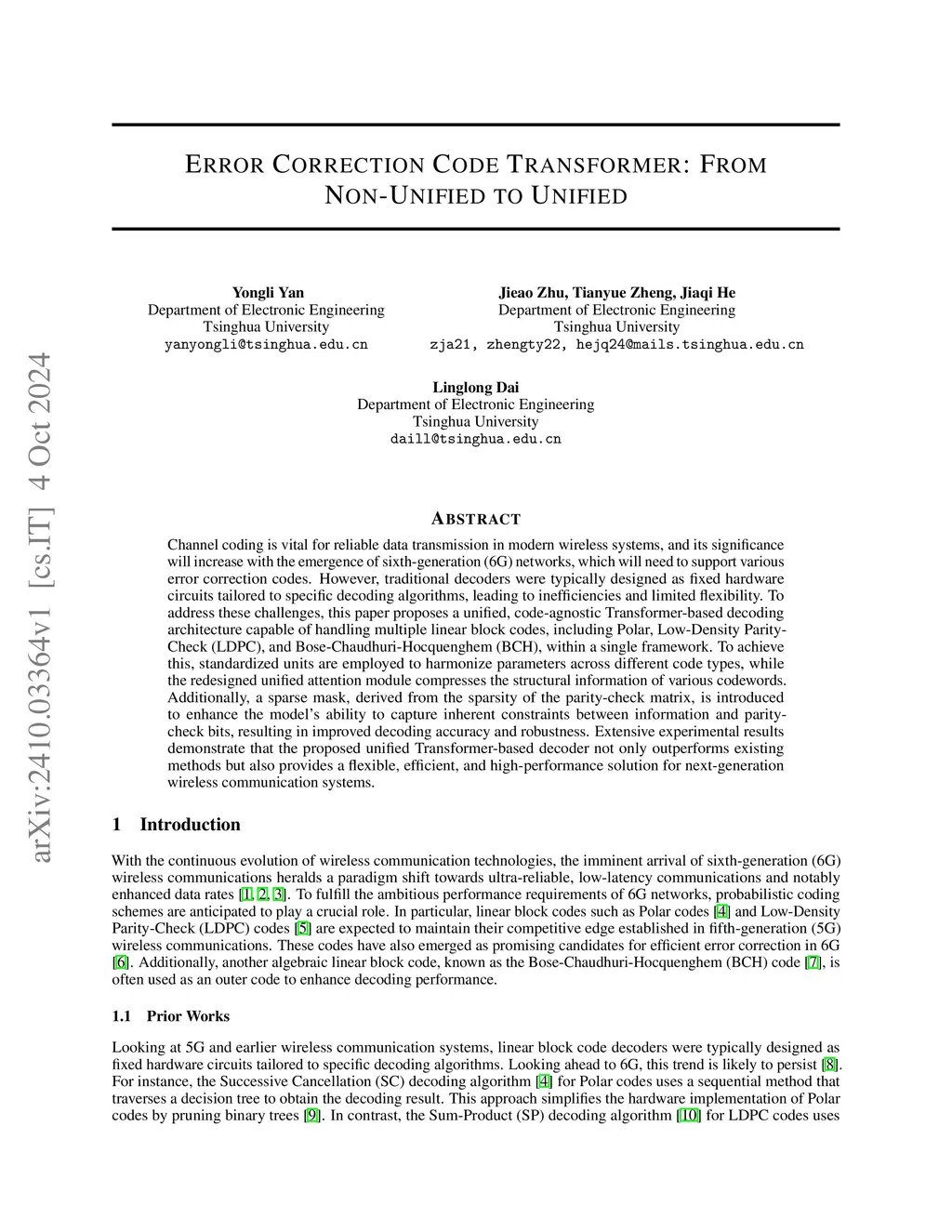 Unified Error Correction Code Transformer with Low Complexity