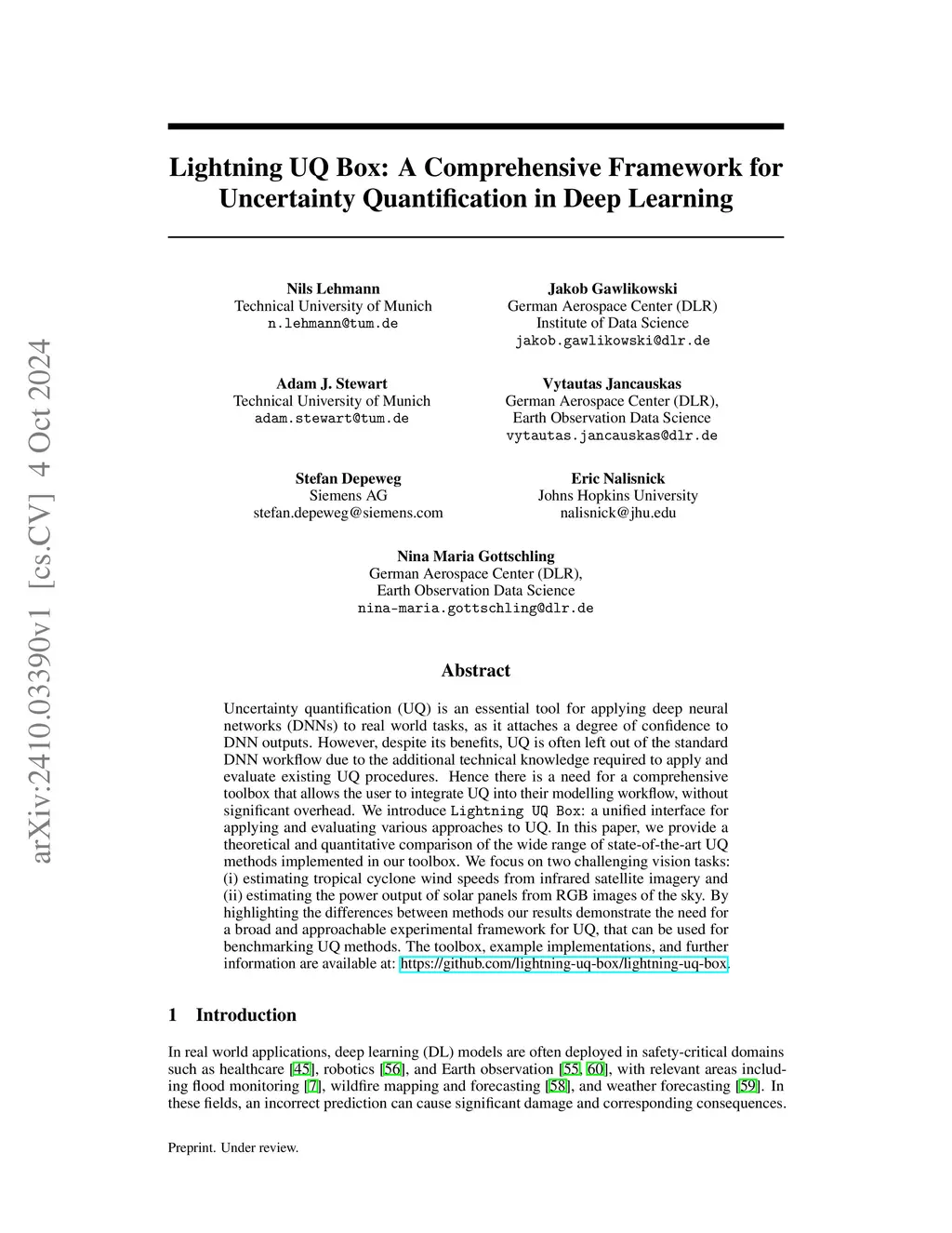 Uncertainty quantification (UQ) is an essential tool for applying deep neural networks (DNNs) to real world tasks, as it attaches a degree of confidence to DNN outputs. However, despite its benefits, UQ is often left out of the standard DNN workflow due to the additional technical knowledge required to apply and evaluate existing UQ procedures. Hence there is a need for a comprehensive toolbox that allows the user to integrate UQ into their modelling workflow, without significant overhead. We introduce \texttt{Lightning UQ Box}: a unified interface for applying and evaluating various approaches to UQ. In this paper, we provide a theoretical and quantitative comparison of the wide range of state-of-the-art UQ methods implemented in our toolbox. We focus on two challenging vision tasks: (i) estimating tropical cyclone wind speeds from infrared satellite imagery and (ii) estimating the power output of solar panels from RGB images of the sky. By highlighting the differences between methods our results demonstrate the need for a broad and approachable experimental framework for UQ, that can be used for benchmarking UQ methods. The toolbox, example implementations, and further information are available at: https://github.com/lightning-uq-box/lightning-uq-box