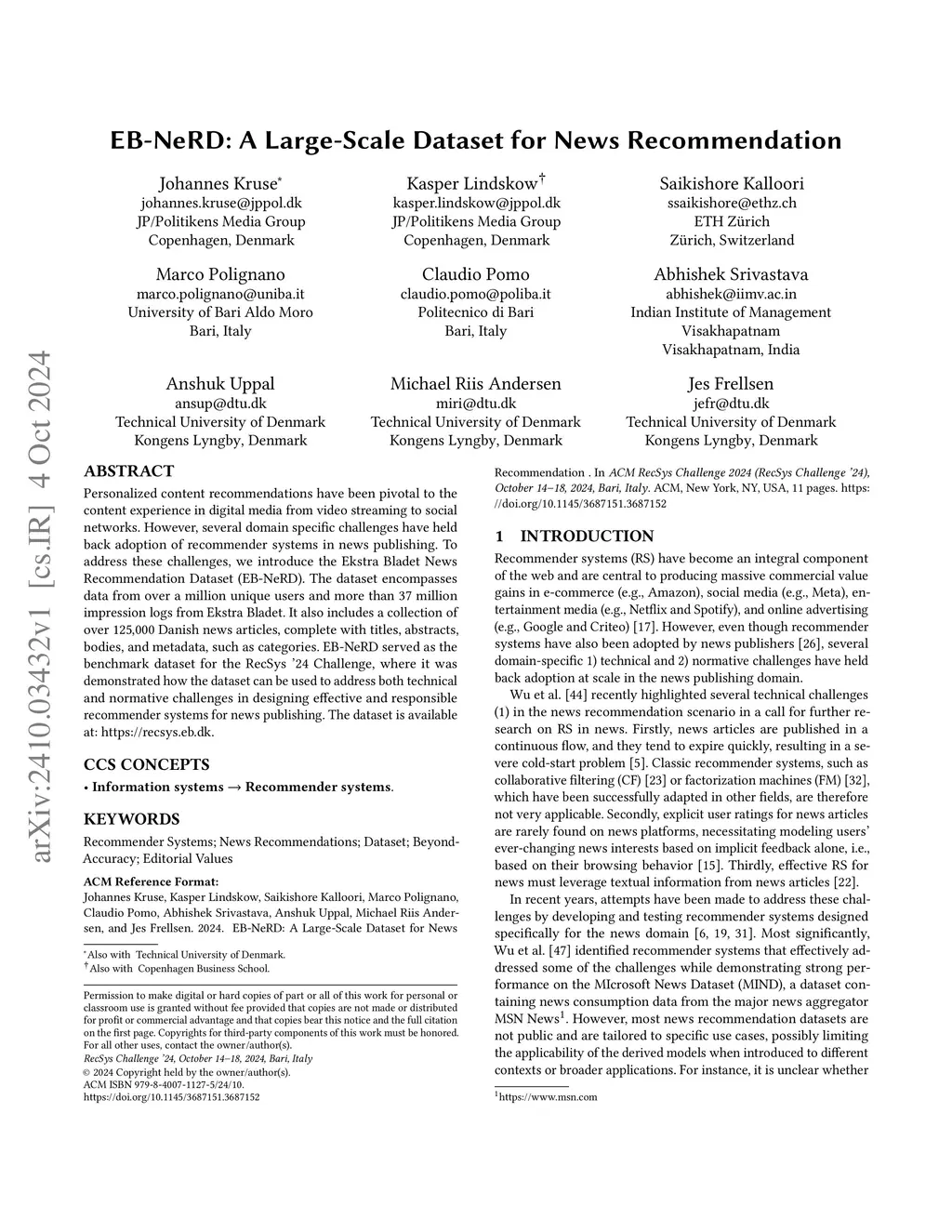 EB-NeRD: A Large-Scale Dataset for News Recommendation
