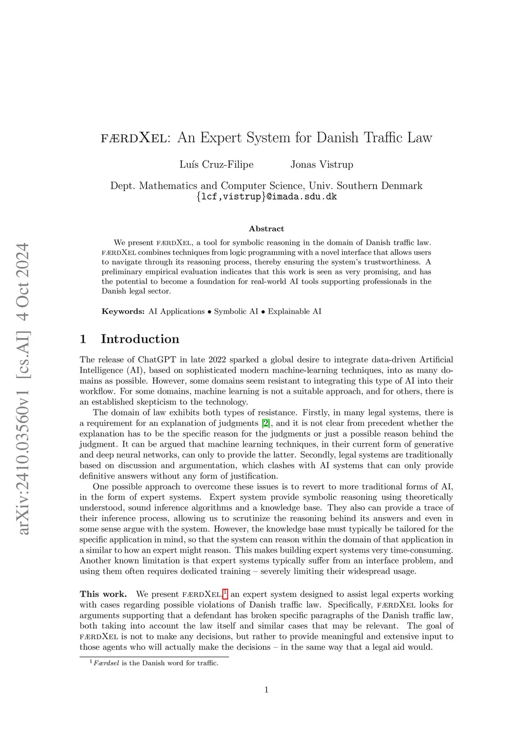 FÆRDXEL: An Expert System for Danish Traffic Law