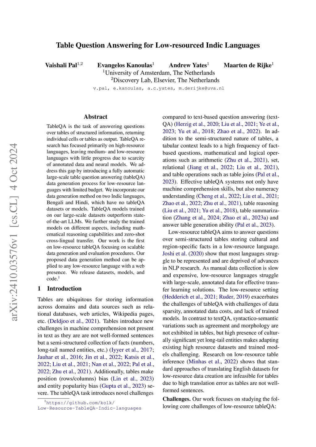 Table Question Answering for Low-resourced Indic Languages