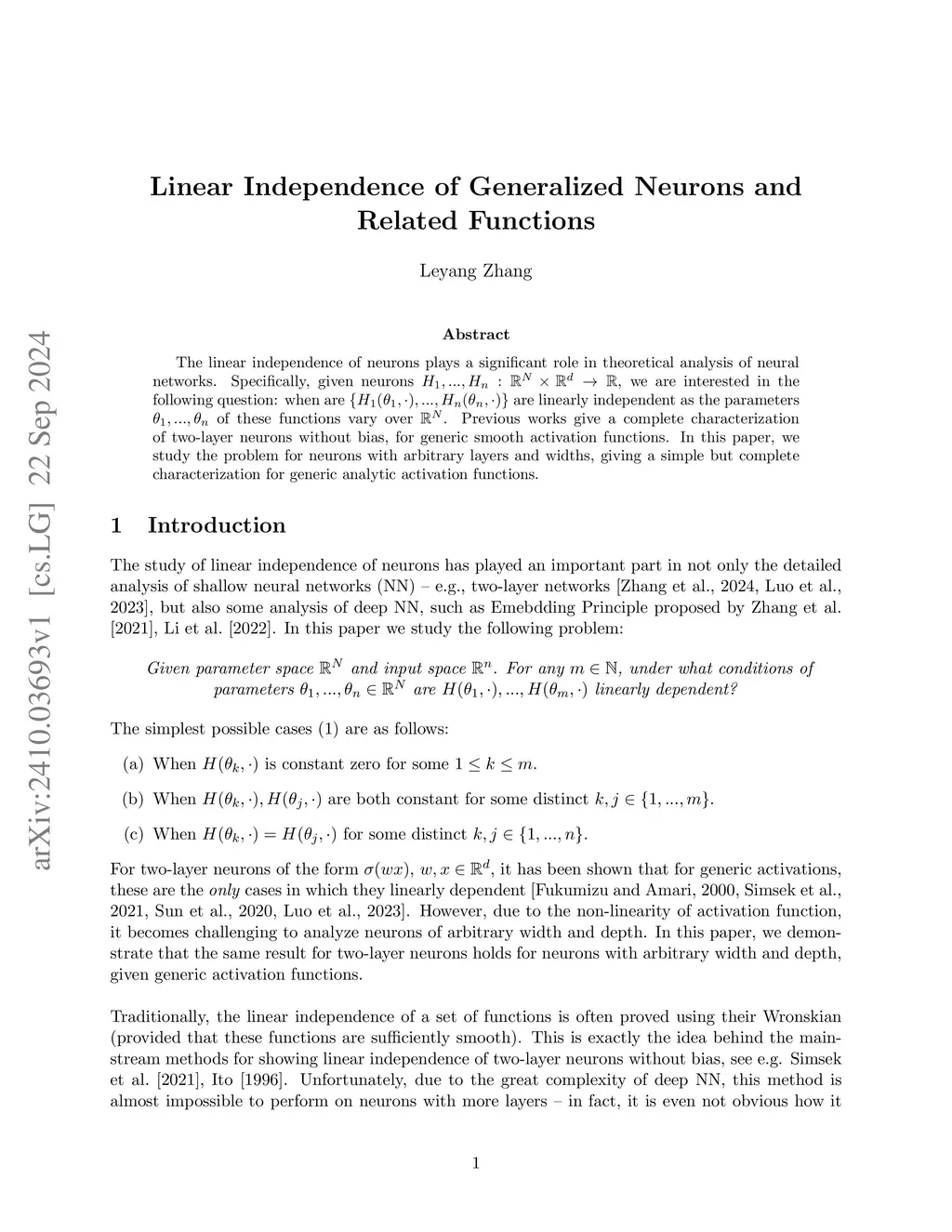 The linear independence of neurons plays a significant role in theoretical analysis of neural networks. Specifically, given neurons , we are interested in the following question: when are are linearly independent as the parameters of these functions vary over . Previous works give a complete characterization of two-layer neurons without bias, for generic smooth activation functions. In this paper, we study the problem for neurons with arbitrary layers and widths, giving a simple but complete characterization for generic analytic activation functions.