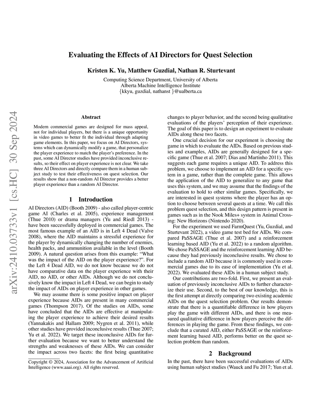 Artificial Intelligence and Interactive Digital Entertainment Conference (AIIDE), 2024