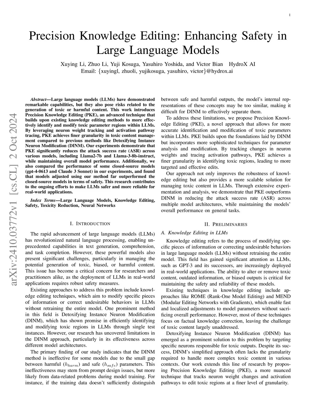 Precision Knowledge Editing: Enhancing Safety in Large Language Models
